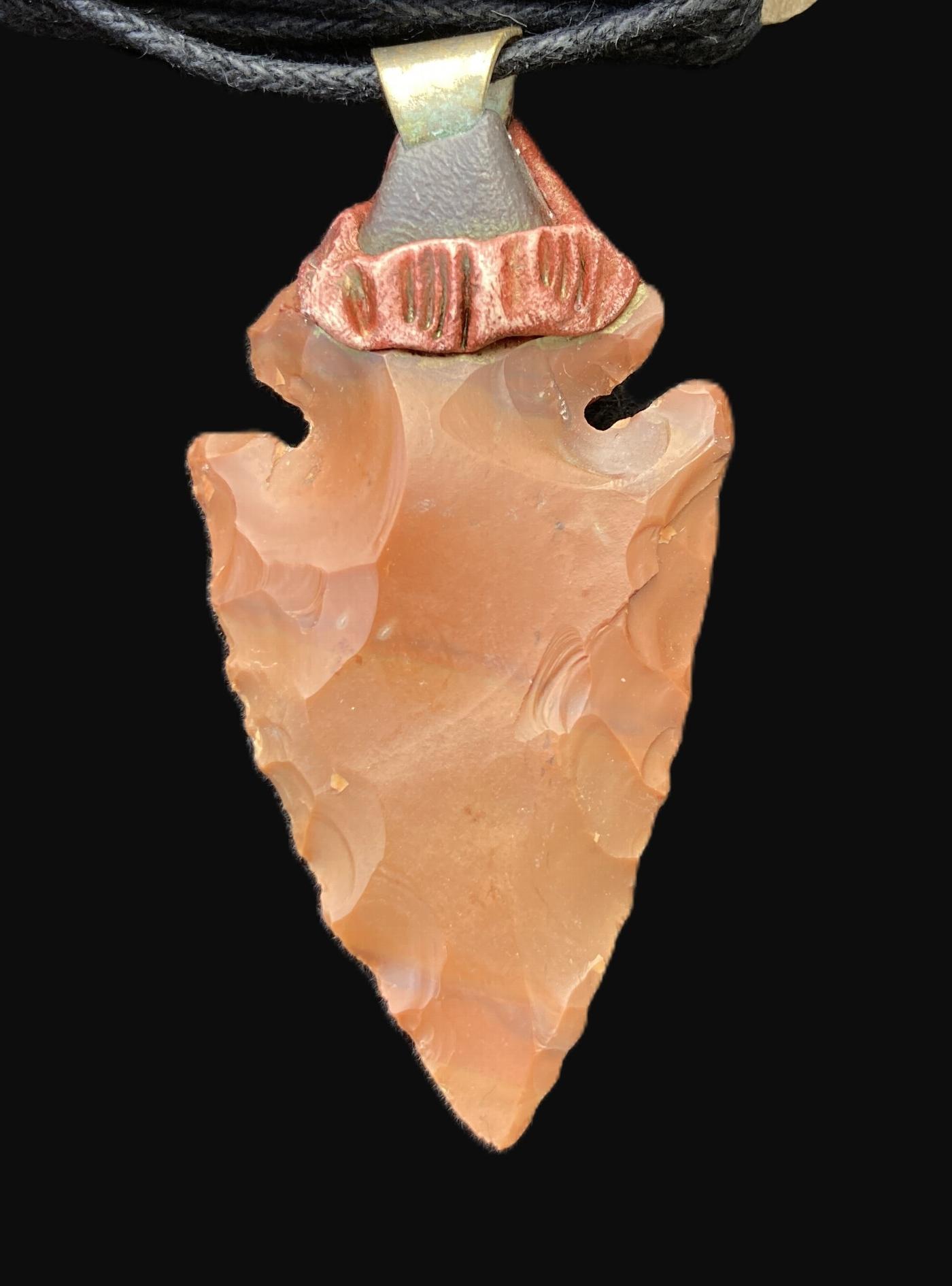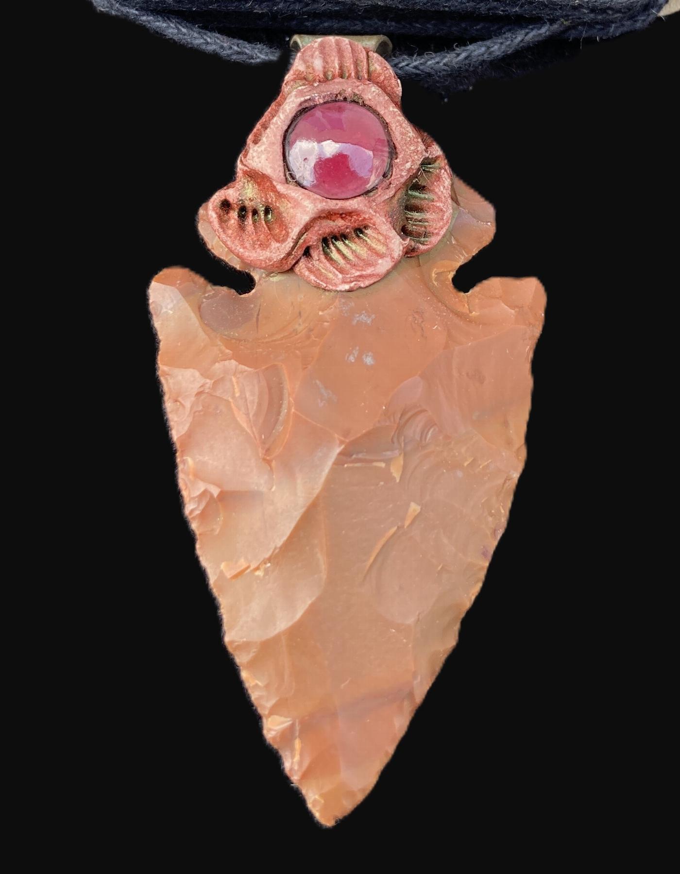 An Arrow Head Red Jasper and Garnet Pendant with a Black Cord in a Gift Box.
